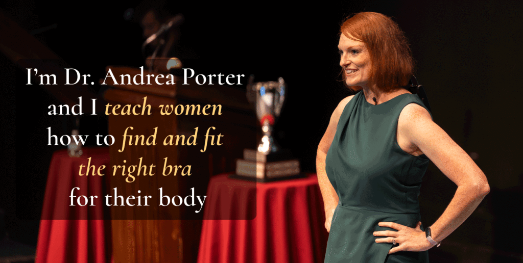 Andrea’s seminars share practical, research-based facts about bras—essential knowledge women deserve but were never taught. Discover how the right bra can do more than just fit—it can transform your comfort, posture, confidence and performance!